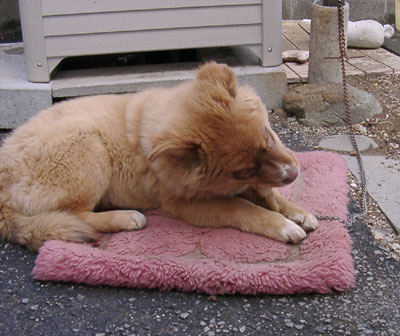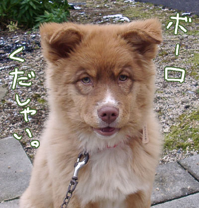 | 05.12.18「雪の朝」 やっぱり庭と家の前の道がキンキンに凍ってたのでボランティア、2ヶ月続きで休みました^^; 昨日の夜、掲示物は仕上げて「宅ふぁいる」という転送サービスを使って送ってあったのですが、朝早速受信した旨のメールが。お手間かけてます…。 朝、昨日ロペがばらした保温マットをアルミシートだけ残して外のゴミを集めてあるところに出しに行ったら、先日ロペにがつんとやってくれた野良犬・シロが門柱の所からのぞいてました。 やっぱりみねだけしかいないと穏やかな明るい目をして、長いしっぽをふりふり。野良犬で洗う人もいないのに、積もった雪を背景にしても真っ白な毛並みが映えて、立ち耳に筋肉質の身体が凛々しい綺麗な犬です。 でも、まだロペがシロを恐がってて、シロが入ってきてロペが自分の家で畏縮してしまうのもかわいそうなので、みねが「いかんよ」と言うとシロは考え深げな表情でみねの顔をジッと見た後、とことこ歩いて去って行きました。ほんと賢い犬です。ごめんな…。 は。ここでシロをいい子いい子してあげてたら、ロペとも仲良くやってくれたのかも…!う〜ん…(悩)。 ロペの方は本日寒い中みね父がリュウの犬小屋を修繕、来た日には入りたがらなかったのでちょっと心配してたのですが、愛用のボア座布団とぞうさんアゴまくらを入れてやったら中で早速ボコボコボコ…と乱闘の音が(笑)。広いし、断熱材でできてるので絶対、プラスチックの小屋よりこっちの方があったかいのです。 とはいえ、寒さはそれほど苦になってないらしく、犬小屋の屋根の雪を取ろうとしたり水飲みの氷を捨ててるのを興味深そうに見てるので、かけらをやってみたらカーリングみたいにつるつる地面をすべる氷を追いかけてかじろうとしたりして元気に外で遊んでました。 午後になって大分雪が解けた頃に撮ったロペ。 半口開いてます。映画の「ドクタードリトル」とか「ベイブ」とかで動物の口がパクパク動いてしゃべるやつみたいなので、アテレコしてみました(笑)。まだ子犬のせいかミルク味には目がなく、先日ペットショップで買ったおやつ詰め合わせの中の犬用ボーロがお気に入りです。 目の色や鼻の色を見ても分かる通りロペは色素が薄いのですが、『動物のお医者さん(佐々木倫子/白泉社)』のハムテル言うところの「ゴムパッキン(人間で言うと唇のあたり?)」の部分もピンク色です。昔近所で飼ってた猟犬(ポインターかな?)も白茶のブチに緑の目でこんな口でした。 |