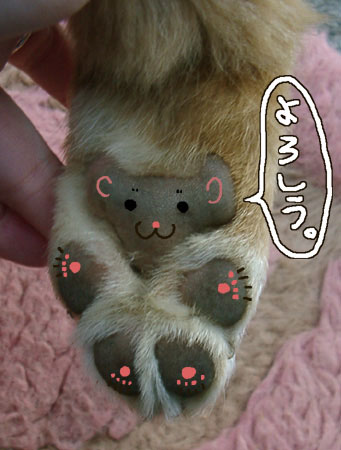 | 05.12.25「おつかれ」 本日ドルパだった方々お疲れさまでした。 みねは今回ボークスので欲しいものはなかったのですが、冬ボの散財の一環に入ってた来月のドールイベントのための資金がロペの医療費さしひいてもちょっと浮きそうなので、ディーラーさんのウェブ販売分を狙ってみようかなと目論んでます。 そして人形祭典気分をちょっとでも味わうべく、シラクサのバリ取りをちょっとやってました。デザインナイフ、このために買ったのに大学の時の型友禅用の彫刻刀の方が使いやすいことにややガッカリ^^;一番スゴかったボディの継ぎ目もなんとか目立たない程度になりました。 ロペのクリスマス、みねに昨夜ローストビーフのはしっこ1きれもらって、今朝みね母にケーキの箱についたクリームを1口、みねおばからおばちゃんちの犬は食べないほねっこをもらいました。 ロペはインドア派というか、家の(門から)中で遊ぶ方が生き生きしていて、散歩ではちょっとのことに怖じけて帰ろうとします。 今朝は近所の家の人がチェーンソーで巨大な木箱を解体してるのにびびって先に進めなくなり、仕方なく散歩コースを逆回転。しっぽ常にさがりっぱなしです。途中でみねの同級生のお父さんにかまわれて大喜びしてやっとしっぽがピンと上向きになって、さっきは通れなかった木箱解体現場の横を通れました。 その後午前中はみね家総出でかまわれ、夕方の散歩ではみねおばの家の柴犬と一緒になり、怒らない大人の犬に大興奮。 さすがに疲れたのか晩ごはんの片付け後ひざ掛けを出しに行ったら、犬小屋の外に敷いたボア座布団の上で丸くなってすっかり寝入っていて、みねがひざ掛けをばさっと振る音で目を覚ましてました。外で寝ると寒いですよ。 しかしロペ、もうすでにおばちゃんくの柴と大きさ一緒ぐらいです…。 さて、そんなロペの右前足をちょっと拝借。 大分前に某所で見てからどうしてもやってみたかった、肉球ベア。いろいろ見ましたが、猫でやったのが最初なのでしょうかね〜?猫でやると指の肉球が細長いので、ちょうど手足になるのですが、犬でもかわいいと思います。 |