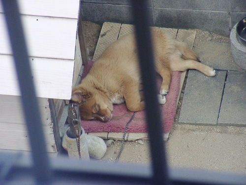 | 05.12.29「ING」 プリンタちゃん、クリーニング6、7回かけてやっと普通の色に^^;スミのカートリッジの噴射口が汚れているようです。今年の年賀状の切手(?)のとこ、すごいかわいいですよね。犬バカなので宛名書きながらにまにましてしまいます(まだ書いてる)。 普通に友達や親戚に送るのと同じ絵柄で今年も生年賀やります。1〜8日まで募集するつもりなので元旦には届きませんが、お年玉付きの送ります。何か良いもの当たるといいですね! お昼寝中のロペ。窓を開けると起きてしまうので、閉めたままで手すりごし。耳、裏返ってます。 ここ最近寒かったので、外で寝てる時は丸くなってたのですが、今日はあったかかったので解けて寝てました。最初はきちんと座布団の上に納まるように身体を曲げてたのが、だんだん足がはみ出したり頭がはみ出したり、ぴくん、ぴくん、と前足やしっぽが動いたり。 犬も夢を見ているかも知れないそうですが、どんな夢を見てるのか…。 ロペの避妊手術、早ければ来月の21日になりました。その日に診察してみて決めるそうです。 今の健康そのもののポンポコリンのお腹が傷付くことはやっぱり怖いです。今でもムクやリュウに子供がいたらどんなにかわいいだろうと思いますし、ロペに子犬が生まれたら愛さずにはいられないでしょう。 でも、人間が飼う以上はそのすべての子犬の命に責任が生じます。負いたくないとは言いたくないけど、現実的にみねには無理だし、子犬すべてに素晴らしい飼い主さんを見つけることも難しい。人間の勝手で飼って、身体を都合良くされると思うとごめんなさいとしか言い様がない、それだって足りないくらいですが。 それでも、いまだ保護もできずいつ交通事故にあったり野犬狩りにあったりするかわからないロペの母犬を初め、野良犬や捨て猫、ペットショップやブリーダー、あるいは飼い主からの引き取りで年間何十万頭の動物たちが保健所で殺されていることを考えると……。うーん、上手いこと言えないのですが、やっぱり必要…というか、悪い言い方なのを承知の上で、仕方ないことだと思います。 この先決して生まれることのないロペの子犬たちの数だけ、そんな子たちを引き取る人が現れて、安心して楽しく暮らせる家が見つかりますように。昨日から引き続き、ここ数カ月里親募集サイトさんを見ていてみねが考えたことでした。 |