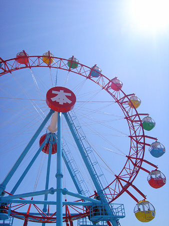 | 06.9.3「ゴンドラ」 今日は岡山から大学時代からの友人が来て一緒に高松でウロウロお買い物。 駅に友達を迎えに行って、まずは高松港湾地域に先月オープンした、「日本最大」を謳う本屋さんへ行きました。 以前は展示だけで販売はしていなかった場所だそうで、つくりは図書館みたいな感じ。そして広めのフロアを持つ3階建てのオフィスビル風の建物丸ごと1軒、本屋さんとゆー……。「この本が欲しい」と思って行っても見つかりませんねあれは(笑)、というお客さまのニーズにこたえてか普通の本屋さん風のスペースが隅っこにまた別に設けられていたりして、本にまみれた建物でした。 そしてなぜか屋上には観覧車が。 本屋さんの観覧車なので、まん中のところが「本」………(笑)。せっかくなので、乗りました(笑)。ゴンドラの1つ1つに「旺文社文庫」とか「新潮文庫」とか書いてあって、友達とみねが乗ったのは「集英社文庫」でした。 その後商店街に移動。みねは先月ロペの医療費と車の保険の支払いでスカンピン、しかも給料日前なので、ひたすら素見しでしたが、新しくできたお店見たり改装前のセールのデパートをウロウロしたりしてウィンドウショッピング堪能。…次はお金持ってきたいね!(苦笑)。友達はいろいろ秋物を買っておりましたよ。みねも、今年の秋服は欲しい!と思うようなのが多くていろいろチェック。 デパートを出たところにある鞄屋さんの店内を優雅な足取りで闊歩するハーレクイン・カラーのグレートデンを見て、みねも友達もウィンドウにはりついて不審人物化したり。 お昼もおやつもしっかりいただき、たっぷりおしゃべりした1日でした。 |