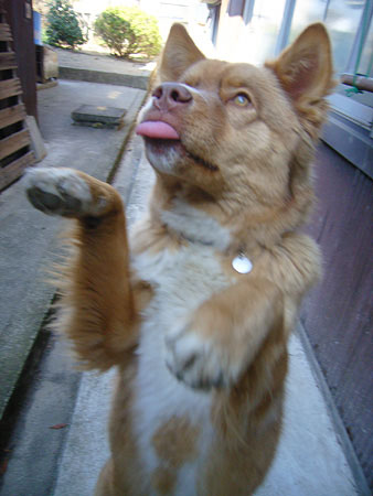 | 07.2.13「さのよいよい♪」 ロペ日記です。 ロープつきボールにさのよいよい♪のロペさん。ベロもチョロリと^^; 日曜にお出かけした時に、まるでお人形のような、つけまつげをつけたようなフッサフサのまつげがかわいい女の子らしい顔だちの犬を見たのですが、↑のロペを見るととても女の子には見えない、気がします…。大体実際に顔を見るとオスかメスかは分かるのですが(雑種だと特に。逆に純血種の方がその犬種にくわしい方でないと、顔を見ただけでというのは分かりづらい場合があると思う)、ロペはどうだろう。 まあ人間でもまゆげの長いおじいさんがいるように、犬も歳をとるとまつげが長くなるのがいるので、日曜に見た犬も、実はまつげの長いおじーちゃん犬かも知れないのですが。 昨日はロペを車で10分ほどのところにあるペット美容室へシャンプーに連れてって来ました。 ただでさえ出費のかさんでる時期なんですが、もうお尻の死毛がからんでスキッパーも歯が立たない状態になって、プロにおまかせすることに。 直前まで庭の放牧スペースに放してたので、車にバッグを乗せて、リードを持って放牧地に入ると、何かを察したロペ、ものすごい遠巻きに…。 しばらくなだめすかしながら追い回し、リードをつけてトイレさせると、諦めたのかしおしおと車に乗り込みましたが、発車したとたんプルプルふるえだしてこっちがびっくりしました。 車はニガ手ですが、洗ってトリミングしてもらってる間はびびりながらも大人しく、手がかからないいい子ですvとトリマーさん。放牧生活で薄汚れていた胸からおなかの白毛も、真っ白に輝いて、そんなに長くない体の毛が動くとなびくほどのサラツヤの仕上がり〜^^ しかし相変わらず放牧生活なので、いつまでもつのやら…です(苦笑)。あ、ちなみに↑のさのよいよい、のロペは、そんな恐怖体験が待ち構えているとは知らない、昨日の朝のロペさん。 |